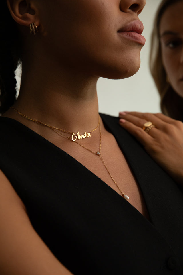 Whether you opt for a name necklace or choose a necklace with engraving – you create personalized jewellery that is truly your own. Depending on the model, you can buy your necklace and personalise it beforehand with up to ten characters – perfect for names or dates of birth. From simple designs without cubic zirconia to extravagant, gold chains with names and engraving, our selection offers something for every taste. With our personalized necklaces, you can be sure that every detail reflects your personal touch, from the engraving to the design.