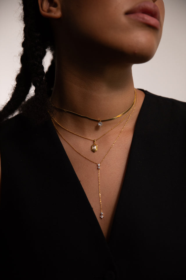Choker jewellery unfolds its true potential when paired with longer necklaces. This layering look adds depth and dimension and makes you the centre of attention at any event. Experiment with different chain lengths and variations: A fine, long gold chain that extends beyond the choker can add an elegant contrast. Or try several thinner chains in different lengths to create a playful eye-catcher.