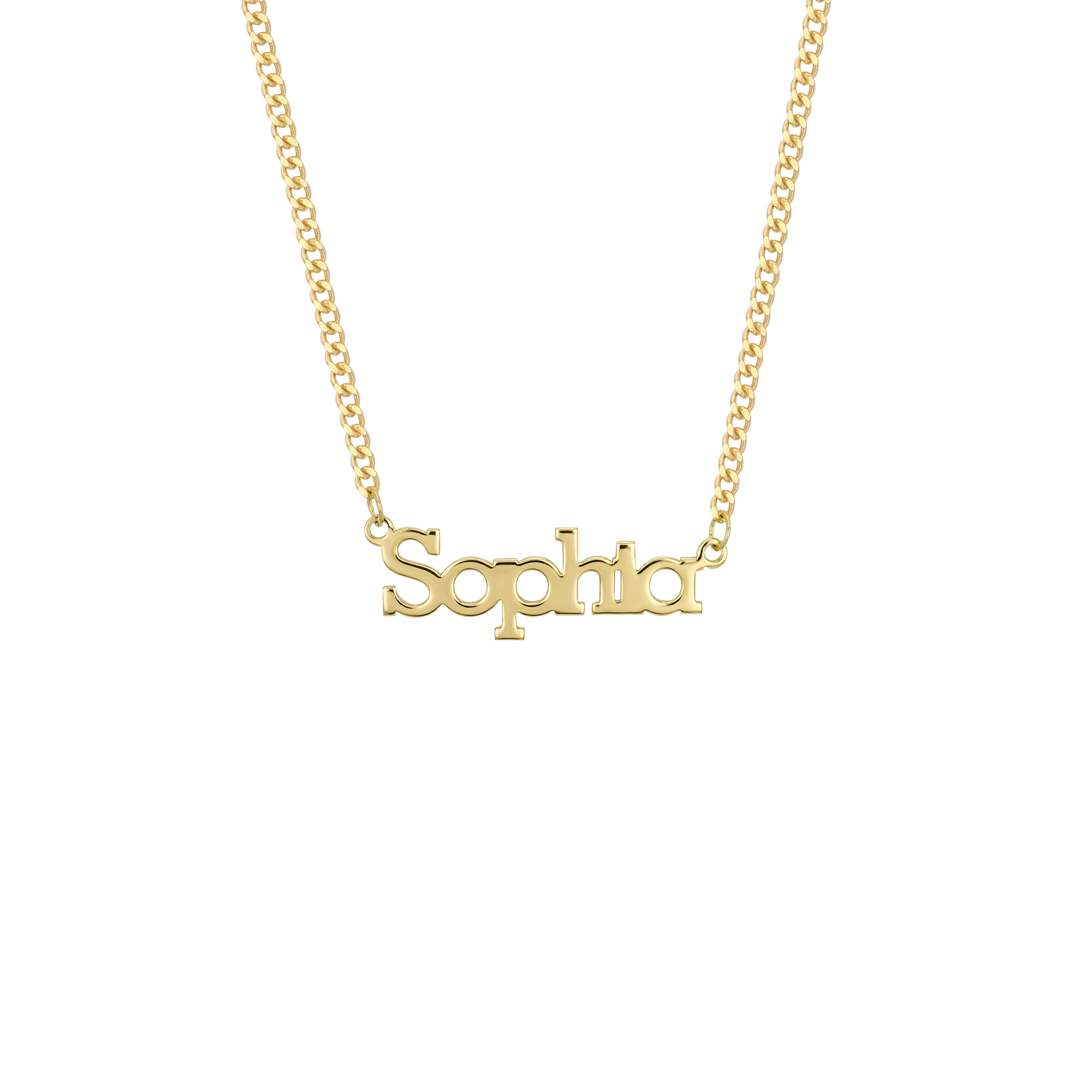 Introducing the long-awaited nameplate necklace in a new style- this pendant is the perfect personal addition to your stack. We’re leaving this one completely up to you; choose to wear your name proudly on your chest, commemorate a favourite pet or commit to a loved one. The world's your oyster. Hung on a flat curb chain, this pendant's sure to become a staple.