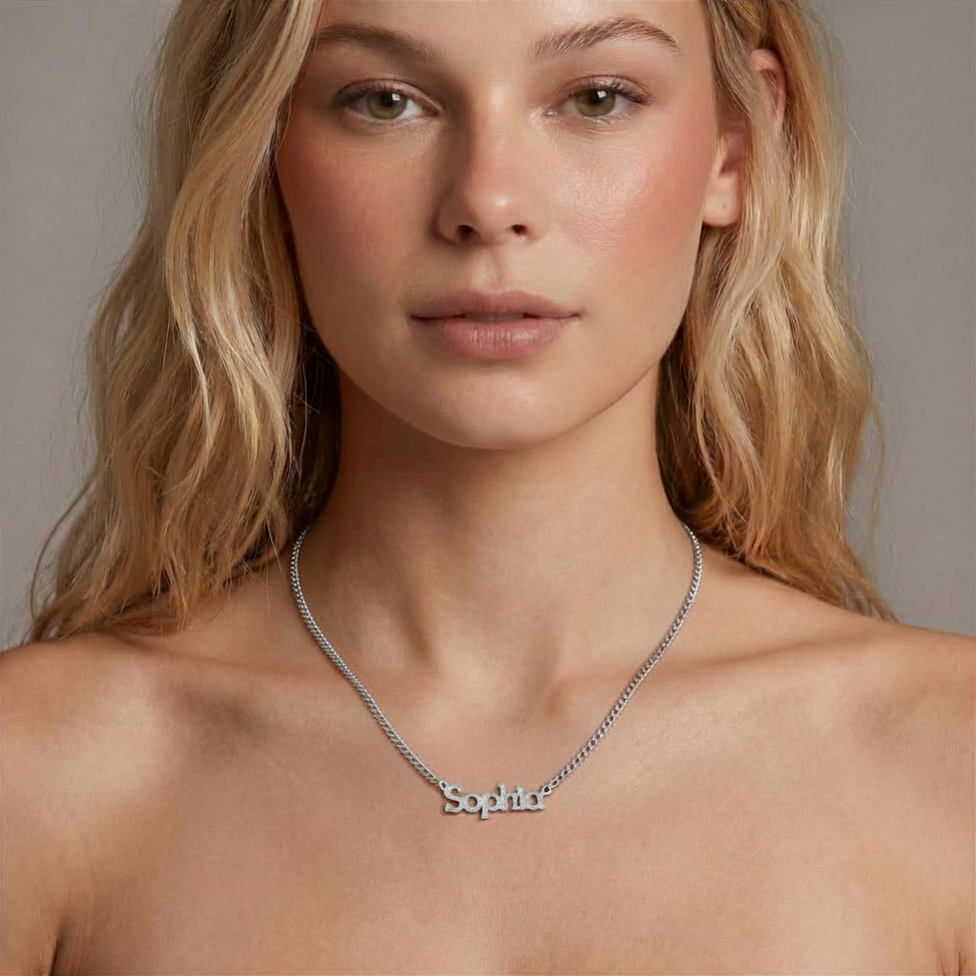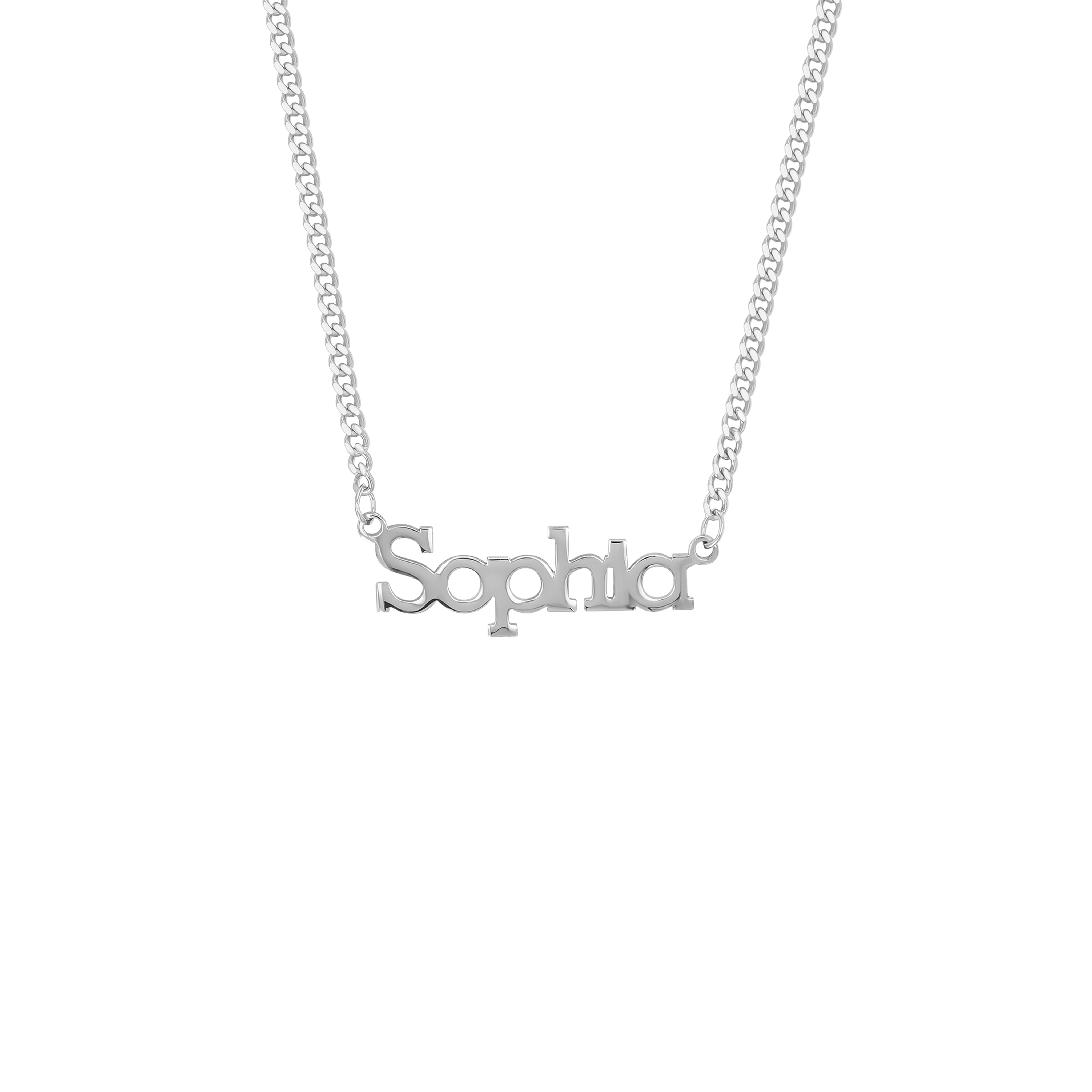 Introducing the long-awaited nameplate necklace in a new style- this pendant is the perfect personal addition to your stack. We’re leaving this one completely up to you; choose to wear your name proudly on your chest, commemorate a favourite pet or commit to a loved one. The world's your oyster. Hung on a flat curb chain, this pendant's sure to become a staple.